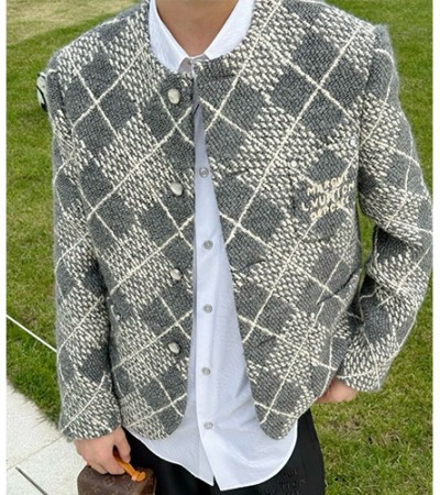 [홍콩명품.LOUIS VUITTON] 루이비통 25SS 로고 다미에 라운드넥 자켓 (그레이), BM19008, TOP, 홍콩명품의류,구매대행,온라인명품 > 남자의류