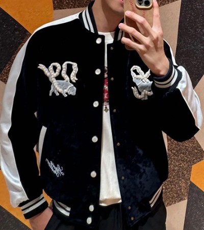 [홍콩명품.LOUIS VUITTON] 루이비통 25SS 로고 LV DOGS 바시티 자켓 (네이비), BM19009, TOP, 홍콩명품의류,구매대행,온라인명품 > 남자의류