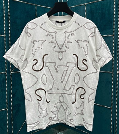 • [홍콩명품.LOUIS VUITTON] 루이비통 25SS 로고 패턴 반팔 티셔츠 (화이트), BM19012, TOP, 홍콩명품의류,구매대행,온라인명품