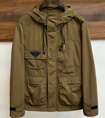 [홍콩명품,PRADA] 프라다 25SS 삼각로고 후드 바람막이 자켓 (브라운), BM19056, KSM, 홍콩명품의류,구매대행,온라인명품 > 남자의류