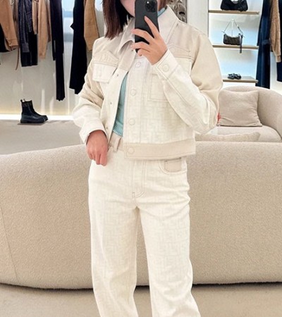 [홍콩명품,FENDI] 펜디 25SS 로고 여성 FF패턴 데님 자켓 + 데님 팬츠 진 청바지 상하의 세트 (아이보리), BM19104, TBG, 홍콩명품의류,구매대행,온라인명품 > 여성몰