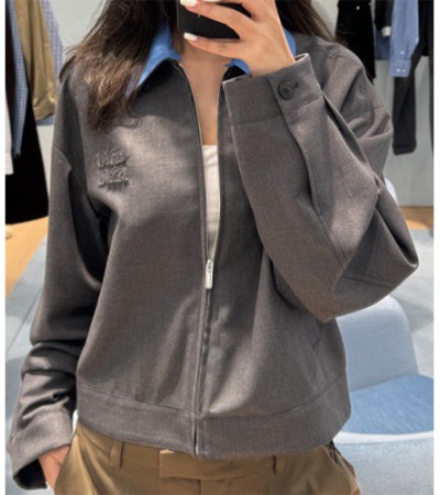 • [홍콩명품,MIU MIU] 미우미우 25SS 로고 자수 여성 카라 자켓 (그레이), BM19107, TBG, 홍콩명품의류,구매대행,온라인명품