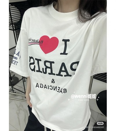 • [홍콩명품.BALENCIAGA] 발렌시아가 25SS 로고 I Love Paris 반팔 티셔츠 (2컬러), BM19248, KB, 홍콩명품의류,구매대행,온라인명품