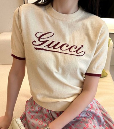 • [홍콩명품.Gucci] 구찌 25SS 로고 여성 니트 반팔 티셔츠 (2컬러), BM19279, TBG, 홍콩명품의류,구매대행,온라인명품