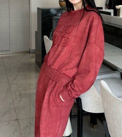 • [홍콩명품,MIU MIU] 미우미우 25SS 로고 여성 워싱 맨투맨 티셔츠 + 조거 팬츠 바지 상하의 세트 (2컬러), BM19288, TBG, 홍콩명품의류,구매대행,온라인명품