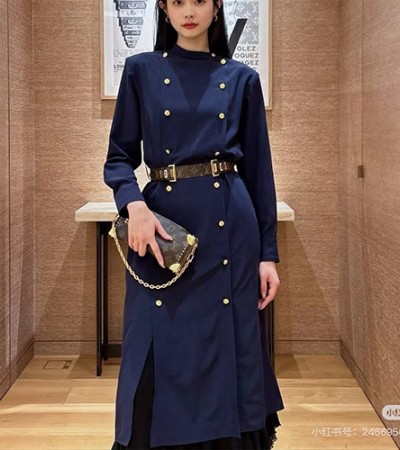 • [홍콩명품.LOUIS VUITTON] 루이비통 25SS 로고 여성 벨티드 롱 셔츠 원피스 (블루), BM19320, TBG, 홍콩명품의류,구매대행,온라인명품
