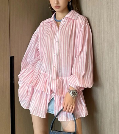 [홍콩명품.CHANEL] 샤넬 25SS 로고 패턴 여성 스트라이프 블라우스 셔츠 (2컬러), BM19556, PG, 홍콩명품의류,구매대행,온라인명품 > 여성몰