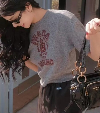 • [홍콩명품,PRADA] 프라다 25SS 로고 여성 니트 반팔 티셔츠 (2컬러), BM19583, 13C, 홍콩명품의류,구매대행,온라인명품