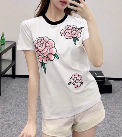 [홍콩명품.CHANEL] 샤넬 25SS 로고 여성 플라워 장식 반팔 티셔츠 (화이트), BM19721, TBG, 홍콩명품의류,구매대행,온라인명품 > 여성몰
