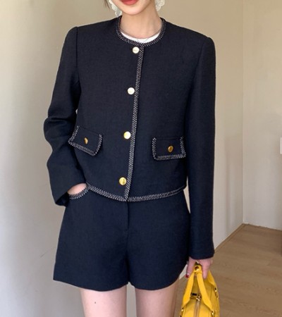• [홍콩명품.CHANEL] 샤넬 25SS 로고 여성 라운드넥 쇼트 자켓 + 미니 쇼츠 반바지 상하의 세트 (네이비), BM19741, TBG, 홍콩명품의류,구매대행,온라인명품