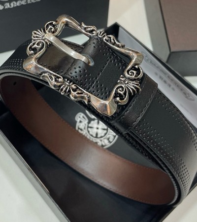 [홍콩명품.Chrome Hearts] 크롬하츠 25SS 로고 925실버 버클 레더 가죽 벨트, 3.4cm, BT1414, BRB, 명품레플리카,인터넷쇼핑몰,남자명품,해외직구 > 벨트