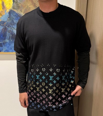 • [홍콩명품.LOUIS VUITTON] 루이비통 24SS 로고 니트 반팔 티셔츠 (네이비), BM17117, JU, 홍콩명품의류,구매대행,온라인명품