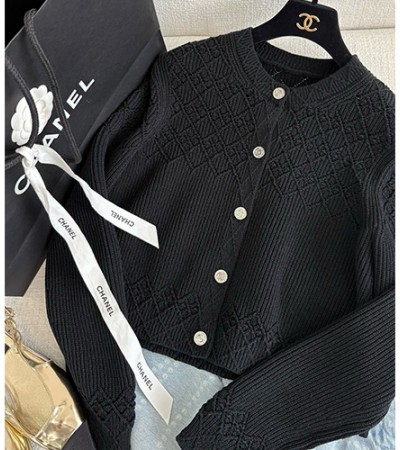 • [홍콩명품.CHANEL] 샤넬 25SS 로고 여성 라운드넥 니트 가디건 (블랙), BM19830, 13C, 홍콩명품의류,구매대행,온라인명품