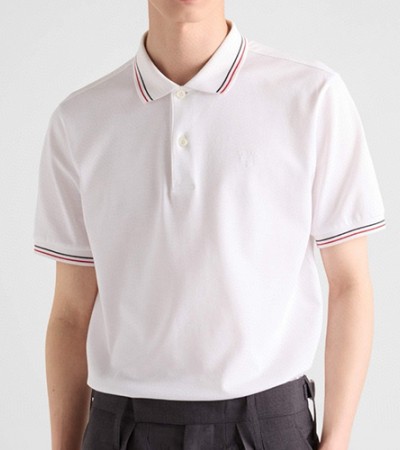 [홍콩명품,PRADA] 프라다 25SS 로고 자수 카라 폴로 반팔 티셔츠 (화이트), BM19866, JL, 홍콩명품의류,구매대행,온라인명품 > 남자의류