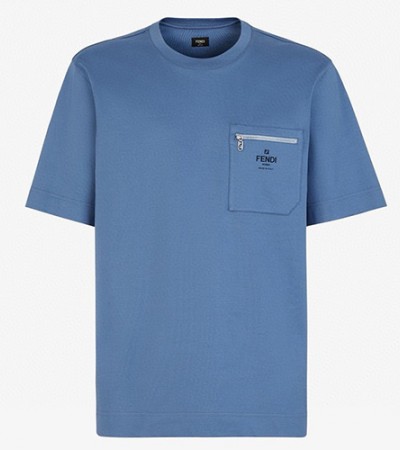 [홍콩명품,FENDI] 펜디 25SS 로고 자수 포켓 반팔 티셔츠 (블루), BM19870, JL, 홍콩명품의류,구매대행,온라인명품 > 남자의류