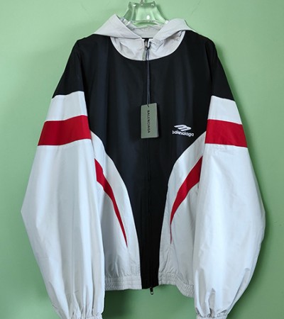 • [홍콩명품.BALENCIAGA] 발렌시아가 25SS 스포티로고 자수 후드 윈드브레이커 자켓 (화이트), BM19879, JL, 홍콩명품의류,구매대행,온라인명품