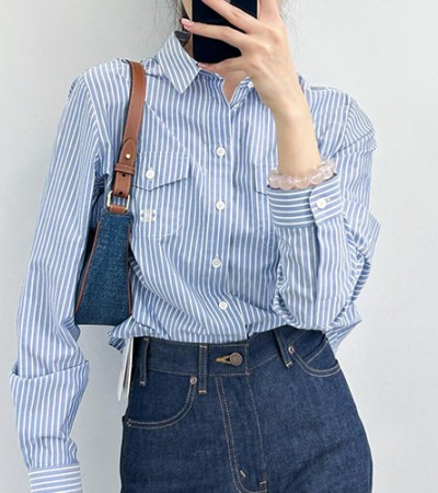 [홍콩명품.CELINE] 셀린느 25SS 로고 여성 스트라이프 남방 셔츠 (스카이블루), BM19913, TBG, 홍콩명품의류,구매대행,온라인명품 > 여성몰