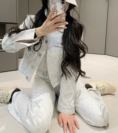 • [홍콩명품.LOUIS VUITTON] 루이비통 25SS 로고 여성 모노그램 데님 자켓 + 데님 팬츠 바지 상하의 세트 (연청), BM20080, CC, 홍콩명품의류,구매대행,온라인명품