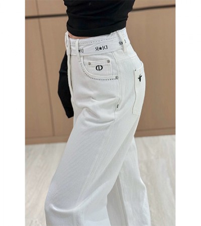 • [홍콩명품,Christian Dior] 디올 25SS 로고 여성 오버핏 데님 팬츠 진 청바지 (화이트), BM20094, CC, 홍콩명품의류,구매대행,온라인명품