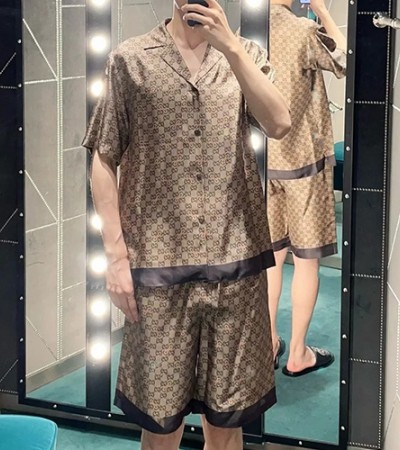 [홍콩명품.Gucci] 구찌 25SS 로고 GG수프림 파자마 반팔 티셔츠 + 쇼츠 반바지 상하의 세트 (브라운), BM20122, KB, 홍콩명품의류,구매대행,온라인명품 > 남자의류