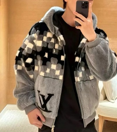[홍콩명품.LOUIS VUITTON] 루이비통 25SS 로고 다미에 퍼 후드 집업 자켓 (그레이), BM20157, KB, 홍콩명품의류,구매대행,온라인명품 > 남자의류