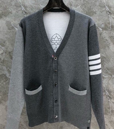 [홍콩명품.THOME BROWNE] 톰브라운 25SS 로고 4바 V넥 니트 가디건 (그레이), BM20203, TB1, 홍콩명품의류,구매대행,온라인명품 > 남자의류