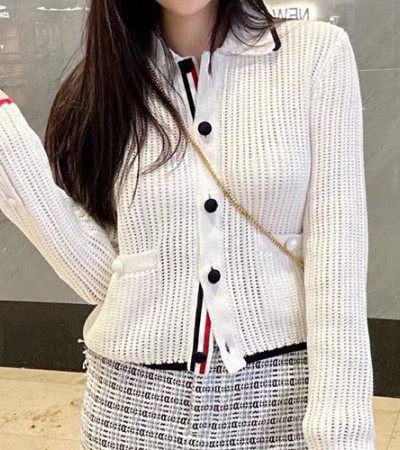 • [홍콩명품.THOME BROWNE] 톰브라운 25SS 로고 여성 카라 니트 가디건 (2컬러), BM20209, TB1, 홍콩명품의류,구매대행,온라인명품