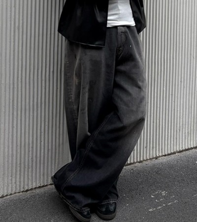[홍콩명품.ACNE STUDIO] 아크네스튜디오 25SS 로고 워싱 오버핏 데님 팬츠 진 청바지 (블랙), BM20244, KB, 홍콩명품의류,구매대행,온라인명품 > 남자의류