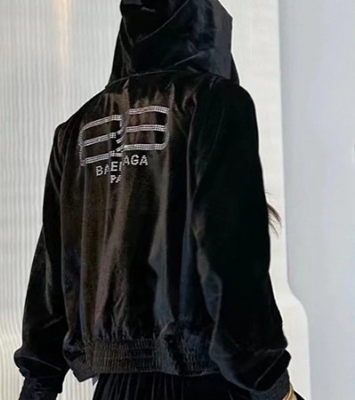 • [홍콩명품.BALENCIAGA] 발렌시아가 25SS 로고 스터드 장식 벨벳 후드 집업 자켓 (블랙), BM20328, JL, 홍콩명품의류,구매대행,온라인명품
