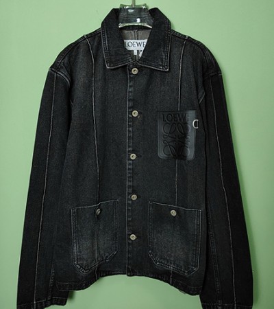 [홍콩명품.LOEWE] 로에베 25SS 로고 레더 포켓 워싱 데님 자켓 (블랙), BM20334, JL, 홍콩명품의류,구매대행,온라인명품 > 남자의류