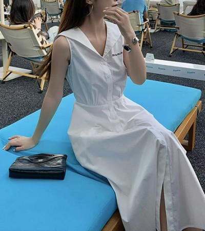 [홍콩명품,MIU MIU] 미우미우 25SS 로고 자수 여성 슬리브리스 셔츠 원피스 (화이트), BM20358, TBG, 홍콩명품의류,구매대행,온라인명품 > 여성몰