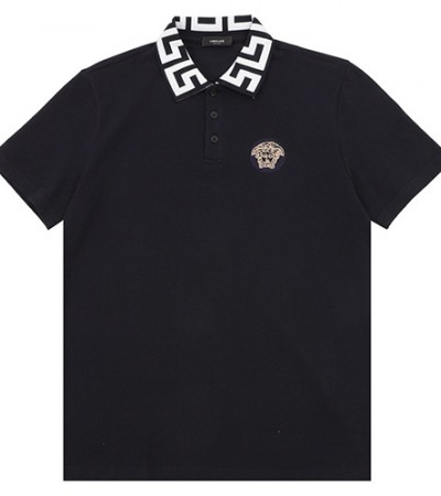 • [홍콩명품.VERSACE] 베르사체 25SS 로고 자수 카라 폴로 반팔 티셔츠 (블랙), BM20380, KK, 홍콩명품의류,구매대행,온라인명품
