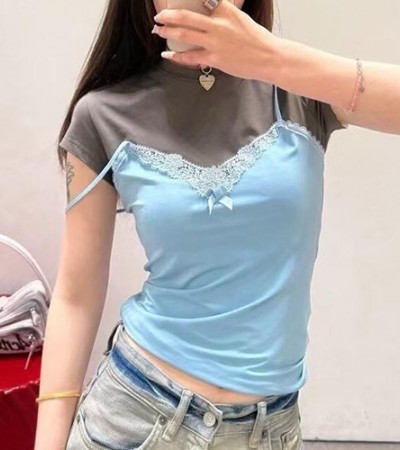 [홍콩명품.ACNE STUDIO] 아크네스튜디오 25SS 로고 여성 2톤 반팔 티셔츠 (스카이블루-브라운), BM20427, 13C, 홍콩명품의류,구매대행,온라인명품 > 여성몰