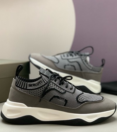• [홍콩명품.BERLUTI] 벨루티 25SS 로고 레더 가죽 스니커즈 운동화 (그레이), SE4743, PMD, 명품스니커즈,운동화,구두,로퍼,하이탑,신발