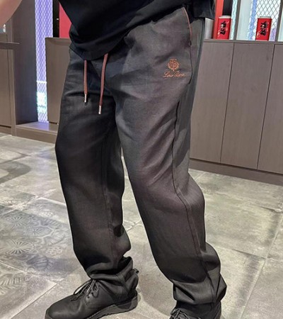 • [홍콩명품.Loro Piana] 로로피아나 25SS 로고 린넨 팬츠 바지 (블랙), BM20474, B&G, 홍콩명품의류,구매대행,온라인명품