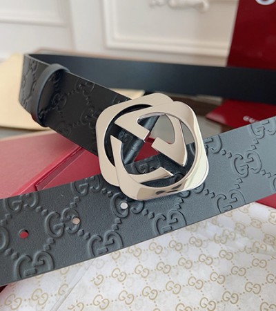 • [홍콩명품.Gucci] 구찌 25SS 로고 패턴 레더 가죽 벨트 (블랙-은장), 4.0cm, BT1434, JX, 명품레플리카,인터넷쇼핑몰,남자명품,해외직구