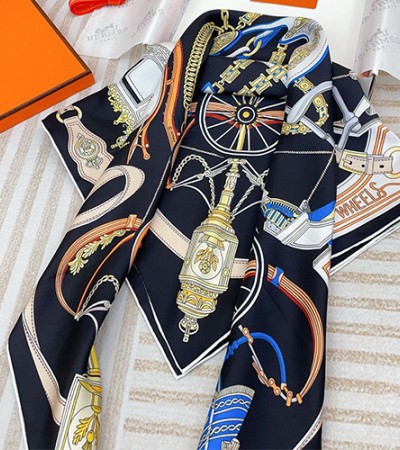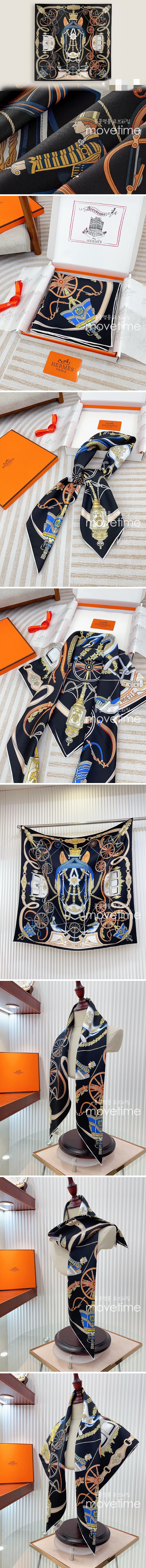 [홍콩명품.Hermes] 에르메스 25SS 로고 Gold State Coach 90-90 실크 스카프 머플러 (블랙), ET2882, JX, 홍콩명품의류,구매대행,온라인명품 > 넥타이/스카프