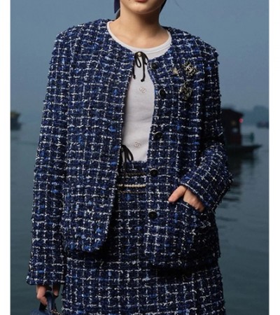 • [홍콩명품.CHANEL] 샤넬 25SS 로고 여성 라운드넥 트위드 자켓 (블루), BM20581, PG, 홍콩명품의류,구매대행,온라인명품
