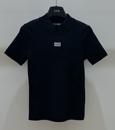 • [홍콩명품,MIU MIU] 미우미우 25SS 로고 여성 니트 반팔 티셔츠 (블랙), BM20596, GBG, 홍콩명품의류,구매대행,온라인명품