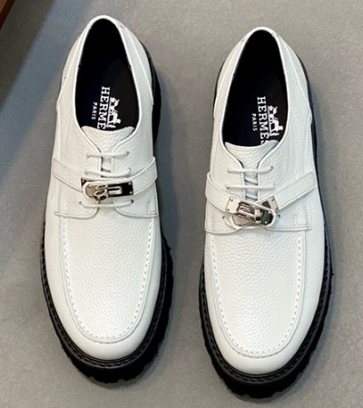 • [홍콩명품.Hermes] 에르메스 25SS 로고 레더 가죽 로퍼 구두 (화이트), SE4822, S2, 명품스니커즈,운동화,구두,로퍼,하이탑,신발