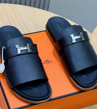• [홍콩명품.Hermes] 에르메스 25SS 로고 남여 이즈미르 레더 가죽 슬리퍼 (블랙), SE5248, GHS, 명품스니커즈,운동화,구두,로퍼,하이탑,신발