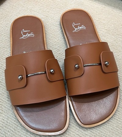 [홍콩명품.Christian Louboutin] 크리스챤루부탱 25SS 로고 레더 가죽 샌들 슬리퍼 (브라운), SE4897, S2, 명품스니커즈,운동화,구두,로퍼,하이탑,신발 > 신발