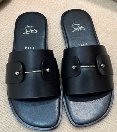 • [홍콩명품.Christian Louboutin] 크리스챤루부탱 25SS 로고 레더 가죽 샌들 슬리퍼 (블랙), SE4898, S2, 명품스니커즈,운동화,구두,로퍼,하이탑,신발