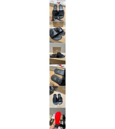 [홍콩명품.Christian Louboutin] 크리스챤루부탱 25SS 로고 레더 가죽 샌들 슬리퍼 (블랙), SE4898, S2, 명품스니커즈,운동화,구두,로퍼,하이탑,신발 > 신발