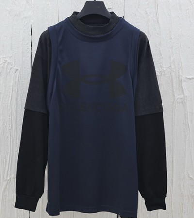 • [홍콩명품.BALENCIAGA] 발렌시아가 25SS 로고 언더아머 콜로보 2톤 긴팔 티셔츠 (네이비), BM20717, KB, 홍콩명품의류,구매대행,온라인명품