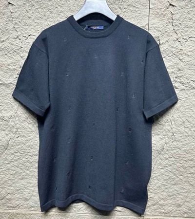 [홍콩명품.LOUIS VUITTON] 루이비통 25SS 로고 니트 반팔 티셔츠 (네이비), BM20727, KB, 홍콩명품의류,구매대행,온라인명품 > 남자의류