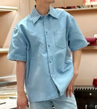 • [홍콩명품.BALENCIAGA] 발렌시아가 24SS 로고 자수 반팔 남방 셔츠 (2컬러), BM13390, TOP, 홍콩명품의류,구매대행,온라인명품