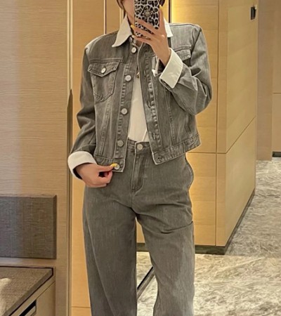 [홍콩명품.CHANEL] 샤넬 25SS 로고 여성 데님 자켓 + 오버핏 데님 팬츠 진 청바지 상하의 세트 (그레이), BM20773, PG, 홍콩명품의류,구매대행,온라인명품 > 여성몰