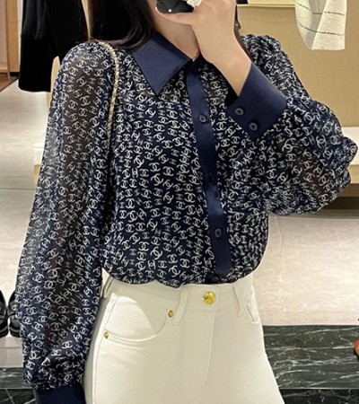 • [홍콩명품.CHANEL] 샤넬 25SS 로고 패턴 여성 블라우스 남방 셔츠 (네이비-2pcs), BM20797, TBG, 홍콩명품의류,구매대행,온라인명품