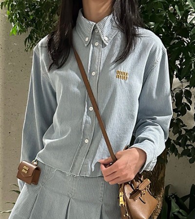 [명품레플리카,MIU MIU] 미우미우 25SS 로고 자수 여성 스트라이프 남방 셔츠 (스카이블루), BM20875, 13C, 홍콩명품의류,구매대행,온라인명품 > 여성몰